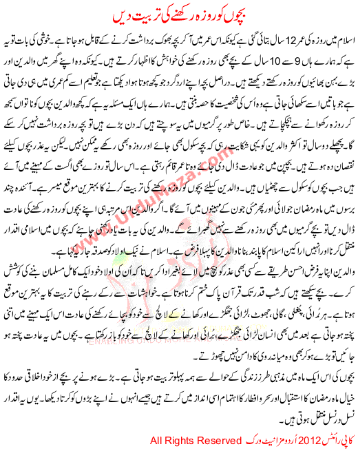 Bachon Ko Roza Rkhnay Ki Tarbiat Dain