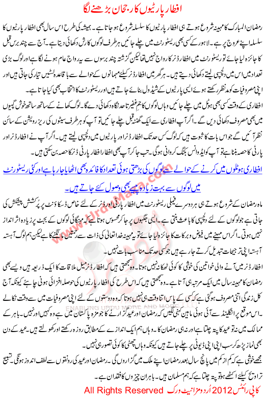 Iftar Partion Ka Rohjaan Barhnay Lga