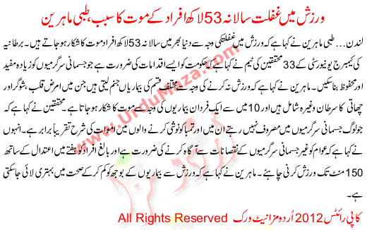 Warzish Me Ghaflat Lakho Afrad Ki Mot Ka Sabab