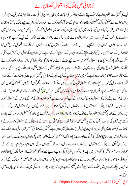 Nojawani Ma Bhangg Ka Istmaal Nuksandeh