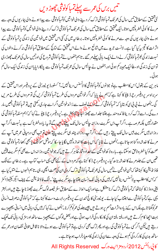 30 Baras Ki Umer Se Pehle Tumbako Noshi Chorh De