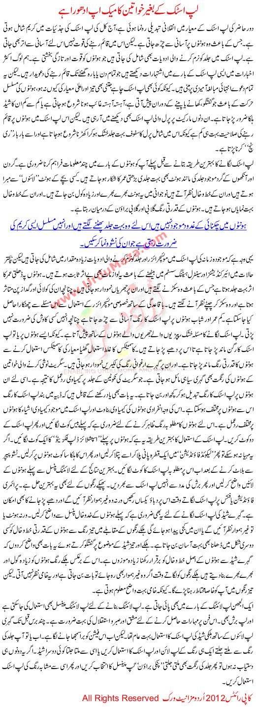 Lip Stick K Bagher Khawateen Ka Make Up Adhora Hai