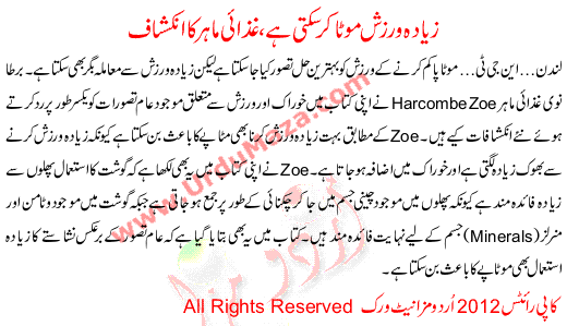 Ziada Warzishh Mota Kar Sakti Hai Ghazaye Mahreen Ka Inkshaf