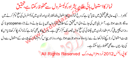 Tamater Ka Istmal Hai Blood Pressure Or Colistrol Se Mehfoz Rakhta Hai Tehqeeq