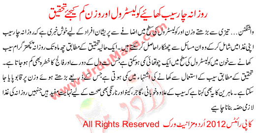 Rozana 4 Seb Khaye Wazan Or Colistrol Kam Kijye Tehqeeq