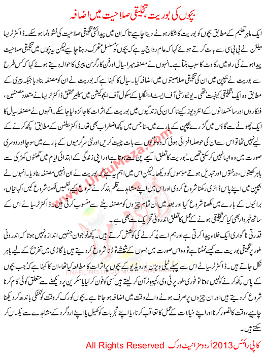 Bacho Ki Boriat Takhleqi Salahiyat Me Azafa