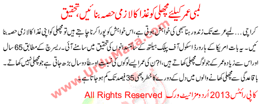 Lambi Umer K Le Machli Ko Lazmi Ghaza Ka Hisa Bnaye