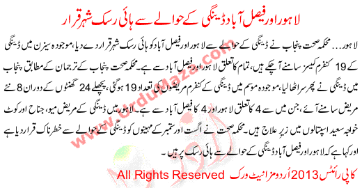 Lahore Or Faislabad Dengi K Hawale Se High Rusk Shehar Qarar