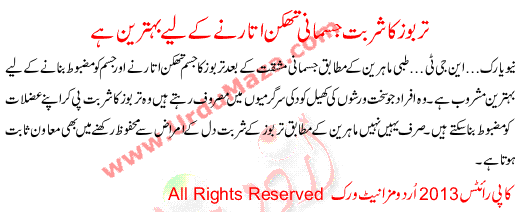 Tarbooz Ka Sharbat Jismani Thakan Utarne K Lye Behtreen Hai