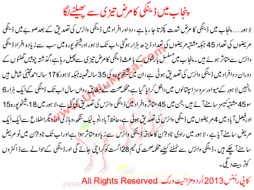 Punjab Me Dengue Ka Marz Tezi Se Phelne Laga