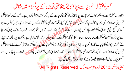 Namonia Se Bachao Ka Tika Hafazti Teeko Me Shamil Kpk