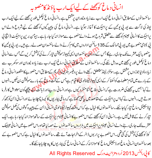 Insani Deemagh Ko Samaghne K Lye 1 Arab Pound Ka Mansooba