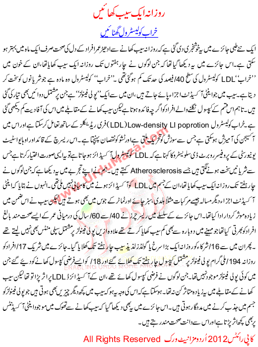 Rozana 1 Apple Khaye Kharab Colistrol Ghataye