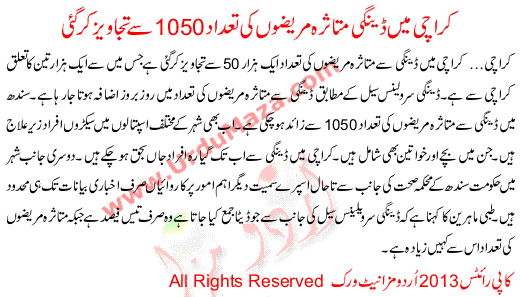 Karachi Me Dengue Se Mutasra Mareezo Ki Tadad 1050 Se Tajawaz Kr Gaye