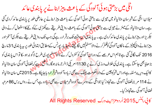 In Italy, Due To The Increasing Pollution Banned Pizza