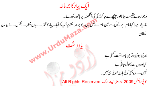 Aik Pyar Ka Jurmana,yaadaasht - Urdu Joke