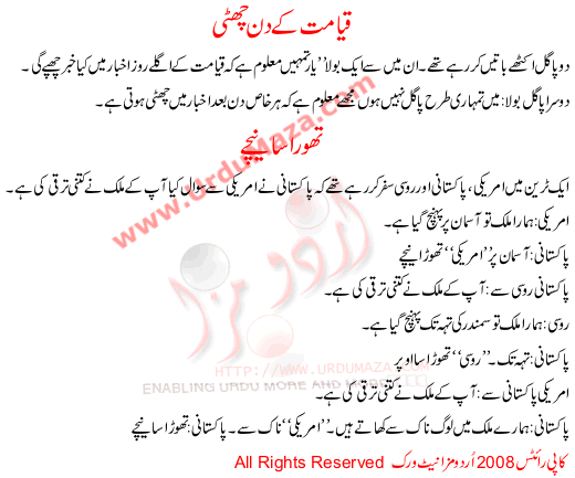 Qyamat Kay Din Chhuti-thora Sa Neechay - Urdu Joke
