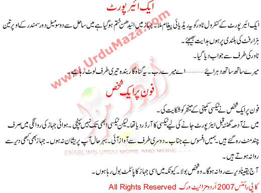 A Control Tower Of An Airport Received A Radio Message A Man Complained To A Taxi Manager By Phone Urdu Jokes - Urdu Joke