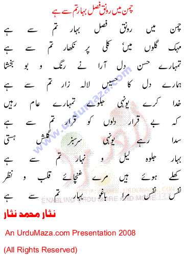 Urdu Love Poem 'Chaman Main Raunaq Fasal E Bahar Tum Se Hai Urdu Love Shairy By Nisar Muhammad Nisar'