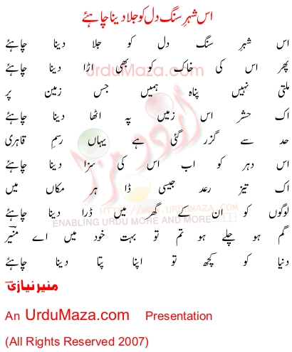 'Iss Shahir E Sang Dil Ko' Poetry by Munir Niazi