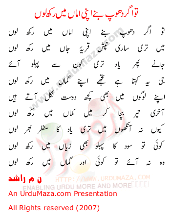 'Tu Agar Dhoop Baney Apni Aman Mey Rukh Loun' Poetry by N.m. Rashid