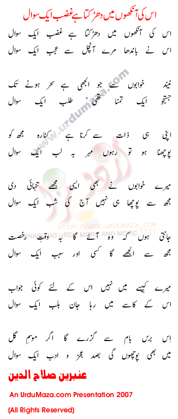 Us Ki Ankhoun Mey Dhaurkta Hey Guzab Aik Swal
