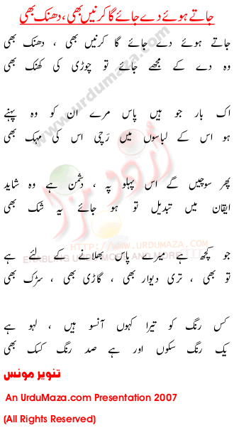 'Jatay Hoi De Jaye Ga Kirnain Bi Bhanak Bi' Poetry by Tanvir Mounus