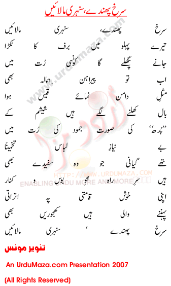 'Surkh Phanday Surkh Malayen' Poetry by Tanvir Mounus