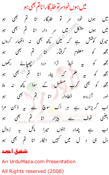 Main Hoon Khud Sar Tu Ana Talabgar Tum Bhi Ho By Shafeeq Ahmed
