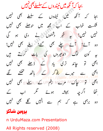 'Baja Kay Aankh Main Neendon Kay Silsilay Bhi Nahi' Poetry by Parveen Shakir