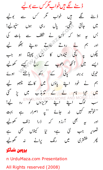'Dasnay Lagay Khawab Magar Kiss Se Boliye' Poetry by Parveen Shakir