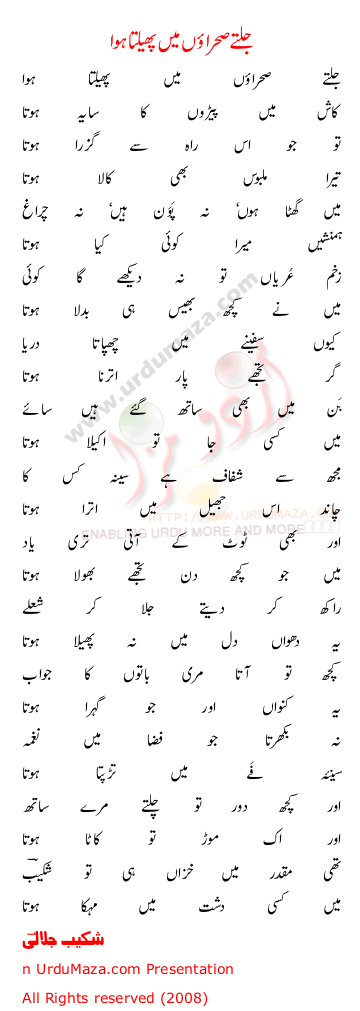 'Jaltay Sehraon Main Phelta Howa' Poetry by Shakeeb Jalali