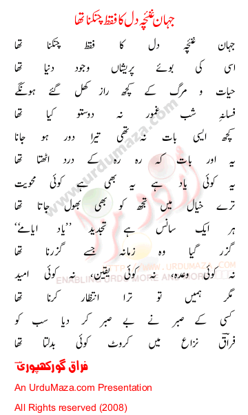 'Jahan Guncha E Dil Ka' Poetry by Firaq Ghorakhpuri