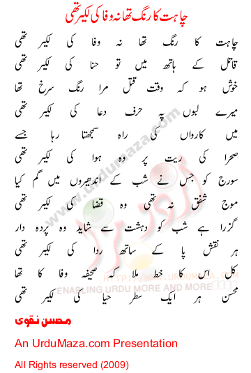 'Chahat Ka Rang Tha Na' Poetry by Mohsin Naqvi