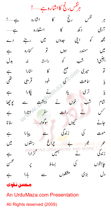 'Har Nafs Ranj Ka Ishara Hai' Poetry by Mohsin Naqvi
