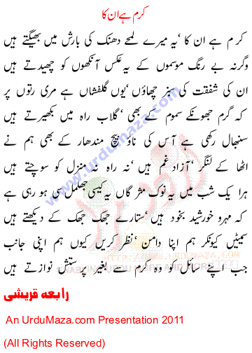 'Karam Hain Un Ka By Rabia Quraishi' Poetry by Women Poetess Mix
