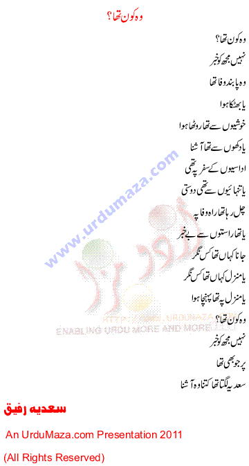 'Woh Kaun Tha By Sadia Rafiq' Poetry by Women Poetess Mix