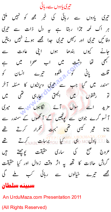 Urdu Poem by Sabina Sultan
