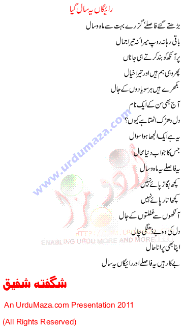 'Raigan Yeh Saal Gaya' Poetry by Shagufta Shafiq