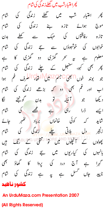 'Phir Aitbar E Shab Main' Poetry by Kishwer Naheed