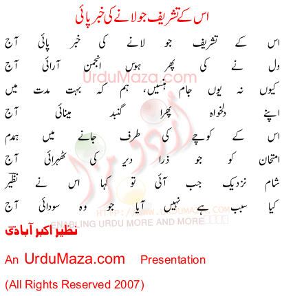 'Uss Kay Tashreef Laanay Ki Khabar Jo Paayee' Poetry by Nazee Akbar Abadi