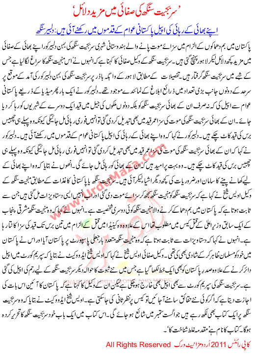 Sarbjeet Singh Ki Safai Ma Mazeed Dalail