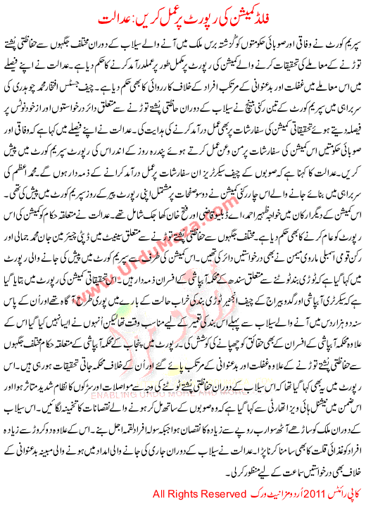 Flood Commision Ki Report Pr Amal Karain Adalat