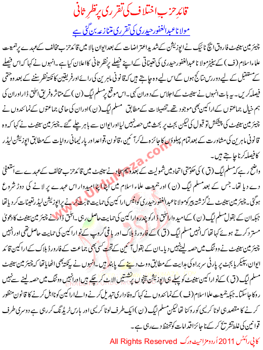 Quaid E Hazb E Ikhtilaf Ki Takarri Pr Nazarsani