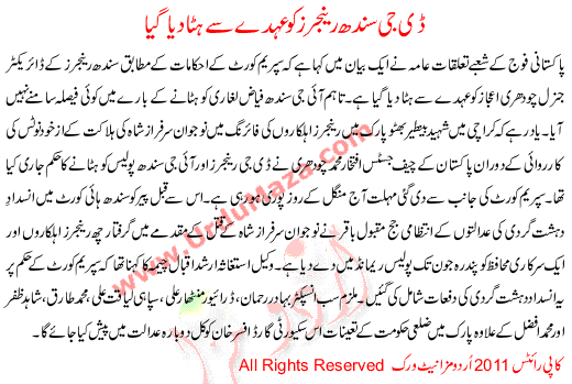 Dg Sindh Rangers Ko Ohday Sa Hata Diya Gya