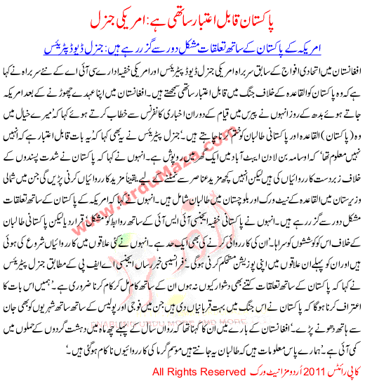 Pakistan Qabl E Etbar Sathi Hai Amrici General