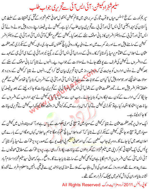 Saleem Shehzad Commision Isi Sa Tehreeri Jawab Talab