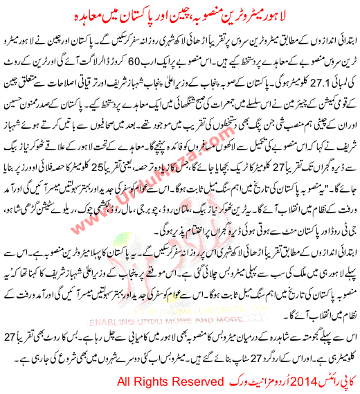 Metro Train Contract Between China And Pakistan In Lahore
