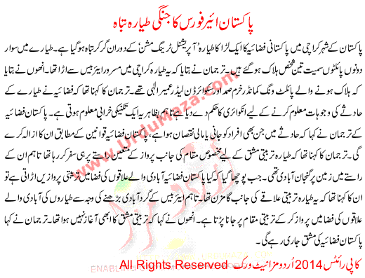 Paistan Air Force Plane Destroyed