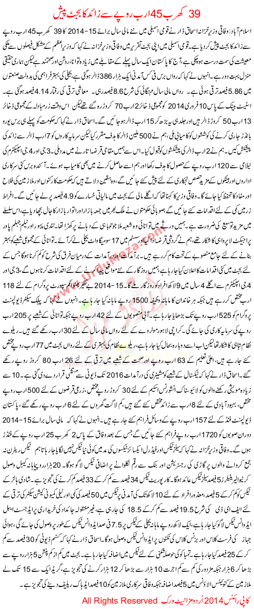 39 Kharab And 45 Arab Se Ziada Ka Budget Pesh